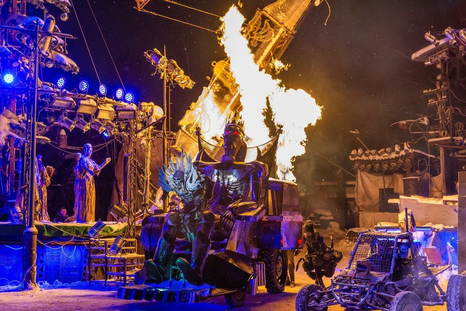 В 2023 году перед зрителями вновь оживет волшебный мир сказки. Движущиеся диковинные декорации и уникальная сказочная техника, летающие мотоциклы и невероятные, рискованные трюки, красочные спецэффекты и любимые герои русских сказок — всё это в Новогодней сказочной истории от Ночных Волков. Ежегодно с 2003 г. мотоклуб «Ночные Волки» при участии большого количества талантливых друзей и единомышленников создает неповторимое зимнее представление для детей. Елки в Байк-центре — это красочное действие с оригинальным музыкальным сопровождением, красивыми литературными текстами и стихами, облаченное в форму русской народной сказки, в которой по сюжету зло бросает вызов миру, но добрые силы, объединившись, дают отпор злодеям и спасают Родину. Из уст героев дети учатся добру, дружбе, готовности прийти на помощь ближнему, смелости, любви к Родине. Наряду с живыми актерами в спектаклях задействовано огромное количество сказочной техники. Она представляет собой не просто статические декорации, но является равноправными персонажами сказки с индивидуальными характерами и харизмой. Диковинные технические объекты буквально оживают на площадке: выражают эмоции, разговаривают, взмывают ввысь, дышат, извергают языки пламени... Талантливыми авторами пишутся музыка, стихи и сказочные тексты. Яркое, захватывающее действие многократно усилено смыслами, подчинено большому замыслу и обращено как к детям, так и к родителям. Дети до трёх лет проходят по одному билету с 1 взрослым. Для родителей детей старше 3 лет нужен билет. Проход детей без сопровождения родителей на елку невозможен по технике безопасности.
