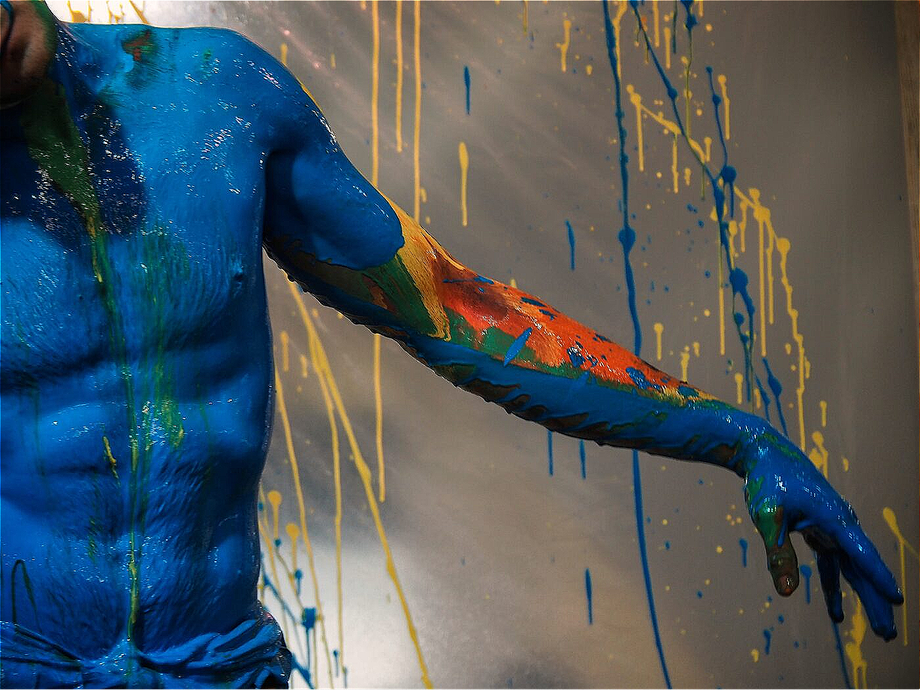 Спектакль-перфоманс основан на манифестах Казимира Малевича и книге Василия Кандинского «О духовном в искусстве», где он подробно разбирает психологическое воздействие каждого цвета на человека. Соотношение чувств с цветом также встречается в теории поэтических настроений индийского трактата Натьяшастры, где, например, любовь это синий цвет, смех — белый. А если приложить к этому теорию потребностей пирамиды Абрахама Маслоу, то возникает последовательность цветов и направление духовного развития человека. В пирамиде Маслоу на нижнем ярусе стоят потребности в еде, выживании — и это соотносится с такими настроениями Натьяшастры как страх и отвращение, обозначенные у Кандинского черным цветом. После потребности в еде, у человека возникает потребность в защите собственной безопасности, что есть отвага в Натьяшастре и обозначается оранжевым. Из этого рождается сюжет жизни лирического героя, Художника, который проходит стадии развития личности от низших потребностей к высшим. Он делает это на сцене путем обливая себя разными цветами, совершая как бы обряд инициации при переходе из одной ступени развития в другую. И так Художник движется до вершины пирамиды. Но не останавливается. Он летит выше — к Богу. Летит дальше — в беспредметное. Летит бесконечно — к началу «Я».