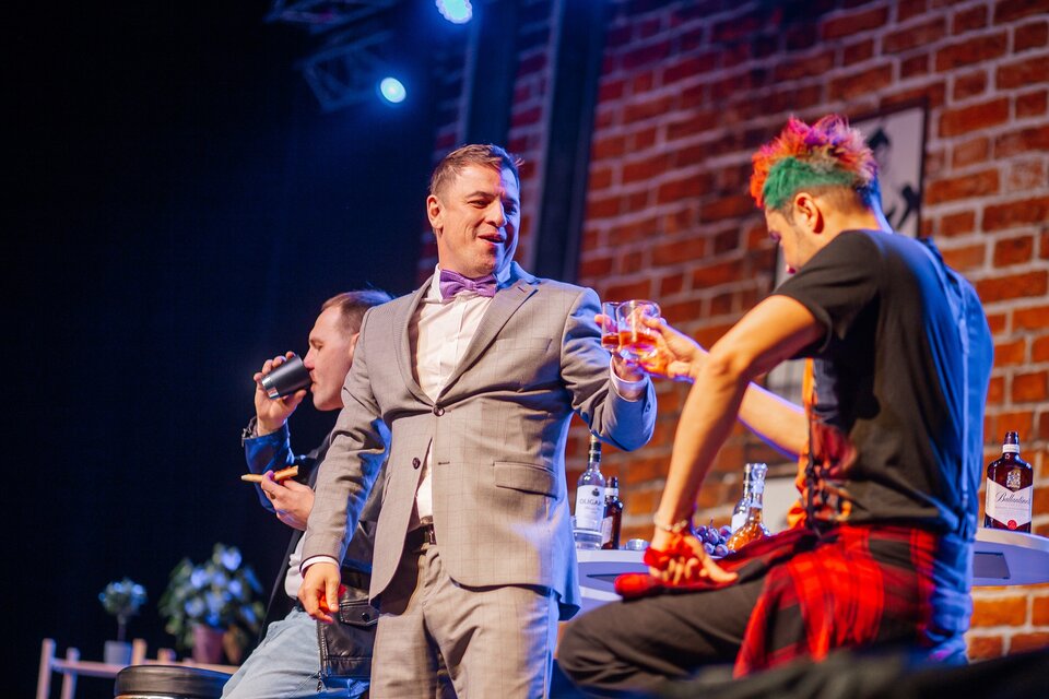 Интрига в «Мальчишнике» выражается в противостоянии внешнего благополучия каждого из героев их внутреннему разладу, что позволяет отнести произведение к течению «новой драмы». «Новая драма» берёт своё начало с пьес таких драматургов, как Генрик Ибсен («Кукольный дом»), Антон Павлович Чехов («Вишнёвый сад»), Бернард Шоу («Дом, где разбиваются сердца»). Она характеризуется переносом смысловых акцентов с внешнего действия на внутренние мотивы человека: в центре оказывается психологическая подоплёка поступков персонажей, а также рефлексия, анализ происходящего. О спектакле: — Главное, чтобы тебе нравилось. — Главное, чтобы девочкам нравилось. Как заставить мужчин устроить вечер откровений? Правильно, собраться на мальчишник и рассказать самые тайные страхи друг друга и признания в своих слабостях. Вспомнить былое и обсудить предстоящее событие — свадьбу одного из них, не разочарованного в «институте брака», Брайана. Поговорить о тайном блоге, и не заметить, что встреча транслируется в прямой эфир социальной сети! Нью-Йорк. Наше время. Виски, пиво и… настоящая «русская рулетка» превращают мальчишник в детективную комедию. Друзья узнают, о том, что каждый из них встречался с одной загадочной дамой, которая теперь беременная. А кто же тогда отец ребёнка? Как это выяснить? И что думают об этом Кристи? А Сара? А Люси? И что скажет сам жених — Брайн? Ведь он тоже оказывается встречался… В спектакле нет ни одной женской роли, и, тем не менее, все дело здесь именно в женщинах! «Все в жизни заканчивается…» Закончится и тайный прямой эфир, но закончится ли дружба после стольких откровений жениха и его друзей устроенный женщиной? В состав исполнителей могут быть внесены изменения без дополнительного уведомления.