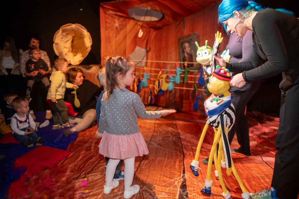 Паучонок Габи живет на чердаке Филармонии среди заброшенного музыкального хлама. Каждый день сквозь щелочку в полу он видит выдающихся музыкантов, слушает их великолепные произведения и мечтает создать свой шедевр! Вот только дело пока не идет... Да и как тут что-то стоящее придумать — дождь стучит по крыше, не переставая?! Точно! Песенка должна быть настолько веселой, чтобы прогнать этот надоедливый дождик! Осторожно! Очень интерактивно! Юные зрители уменьшатся до размера маленьких букашечек, попадут в мир огромных музыкальных инструментов и веселых насекомых. Помогут Паучонку сочинять шедевр и узнают, о чем мечтают другие герои истории: муравьишки, светлячок, муха, улитка и др. Малыши на шоу узнают, из чего сделала песенка и где живут нотки. Составят веселую мелодию. Познакомятся с такими разными музыкальными жанрами. Даже соберут свой оркестр! Словом, повеселятся от души! Целый чердак интересностей к их услугам! Настоящее музыкальное приключение для всей семьи! — Домашняя камерная атмосфера. — В зале всего 40 мест для детей и родителей. — Свободная рассадка. — Ооочень много интерактивных включений с юными зрителями. — Игровой реквизит каждому ребенку! — Бесплатные фото во время спектакля Продолжительность 45-50 минут. Малышам потребуется сменная обувь. Взрослые проходят в зал носочках. А мам очень просим не брать себе в качестве сменной обуви туфли на каблуках, безопасность малышей — превыше всего! Билет необходим на каждого зрителя (как на взрослого, так и на ребенка) старше 8-ми месяцев!