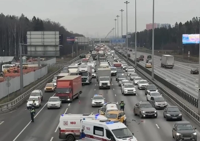 На Киевском шоссе образовалась внушительная пробка из-за массового ДТП с участием такси