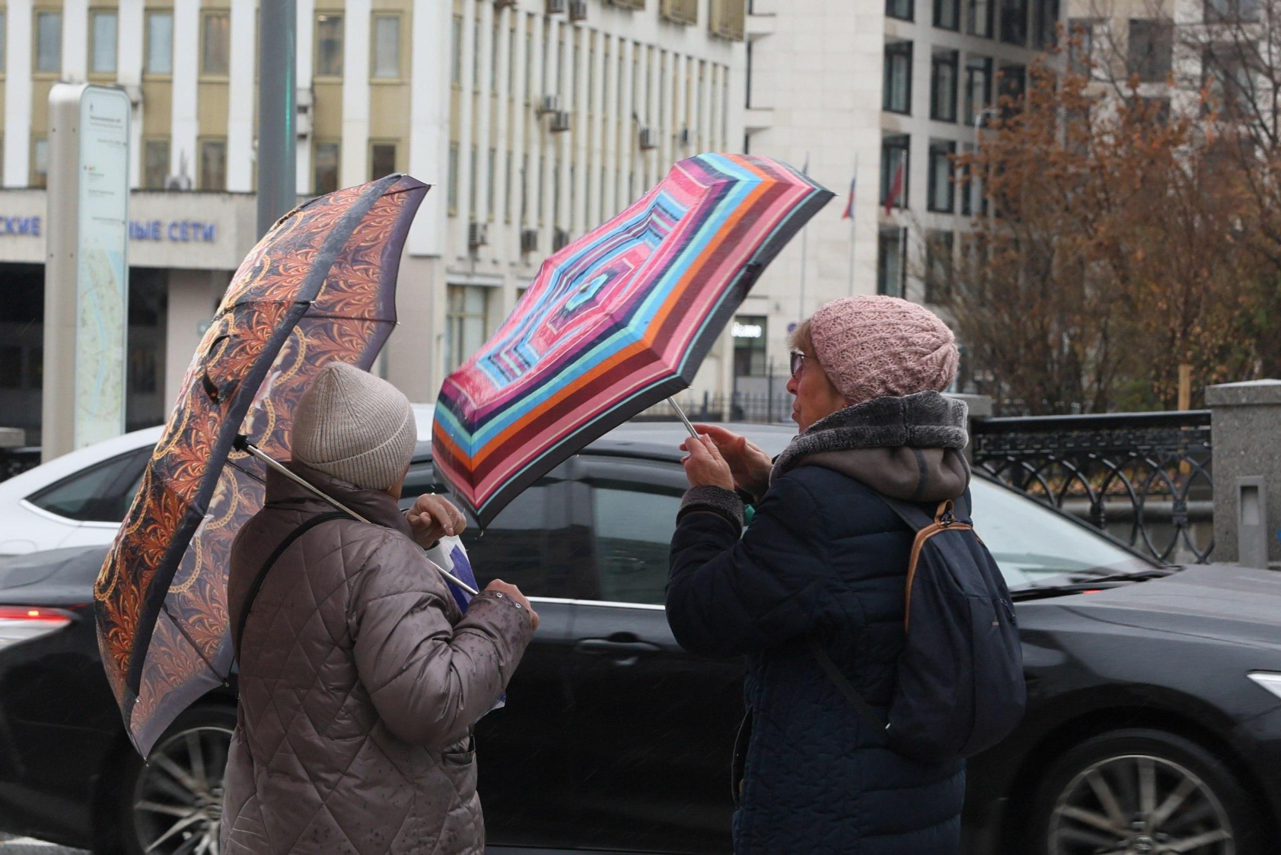 Улицы заполнились разноцветными зонтами. Как москвичи спасаются от дождя в последний день октября — фоторепортажПоказываем, что происходит на улицах в центре столицы