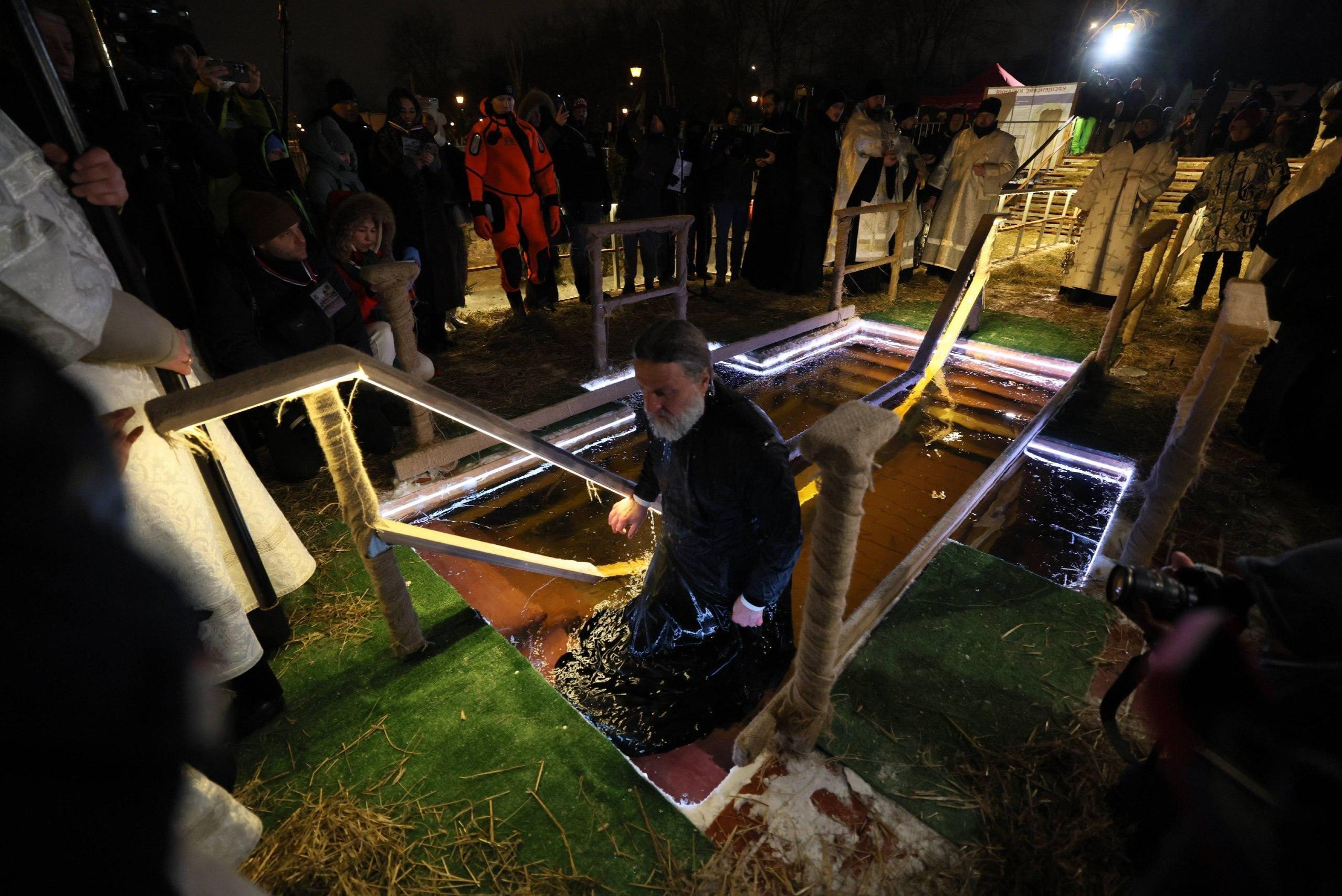 Священник окунулся в прорубь. В Москве начались крещенские купания: первые фотоДля православного праздника подготовили 40 купелей