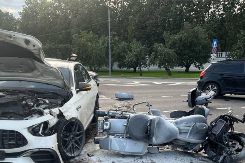 Пережил клиническую смерть. Иномарка с номером 666 столкнулась с байкером на западе Москвы: фотоАвария произошло рядом с главным зданием МГУ