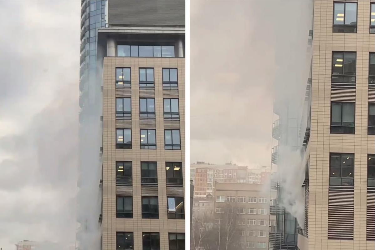 С верхних этажей вырываются языки пламени. В центре Москвы вспыхнул элитный ЖК: видео с места ЧПЖильцы самостоятельно выбрались из горящего здания