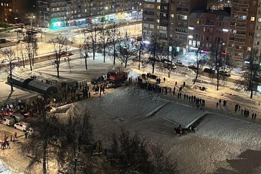 Полиция разогнала участников уличного концерта на гигантской снежной куче в центре МосквыДо этого «Миусскую дюну» начали потрошить экскаваторы