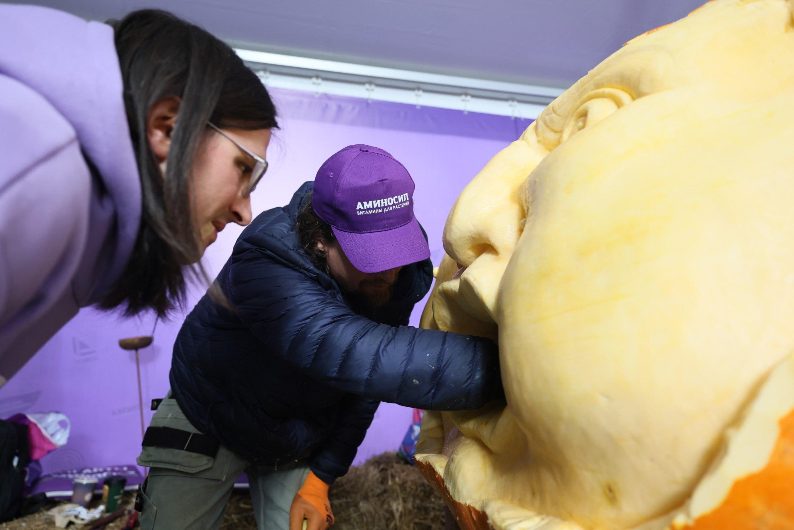 Это круче Хэллоуина. Рассказываем, что сделали в МГУ из тыквы весом в тонну и раздадут ли ее всем желающимШоу с резьбой продолжается в Аптекарском огороде