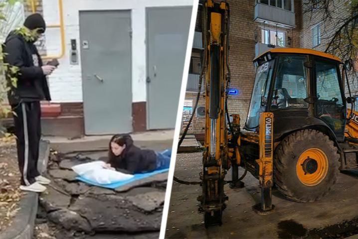 «Устроили бессонную ночь»: жительница Марфино, уставшая от ночной стройки, вышла с подушкой и легла перед рабочими спатьГорожане устали от ремонта дороги до двух ночи