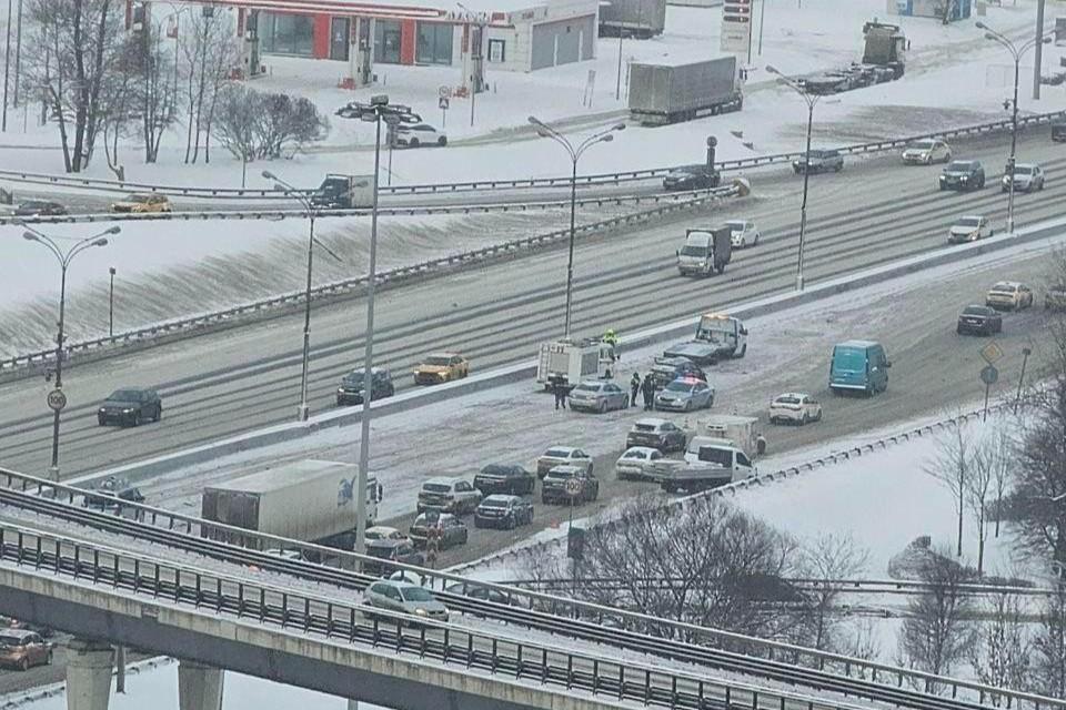 «Сразу 5 машин столкнулись»: на МКАД километровые пробки из-за массовых аварийРассказываем, где проехать сейчас нельзя